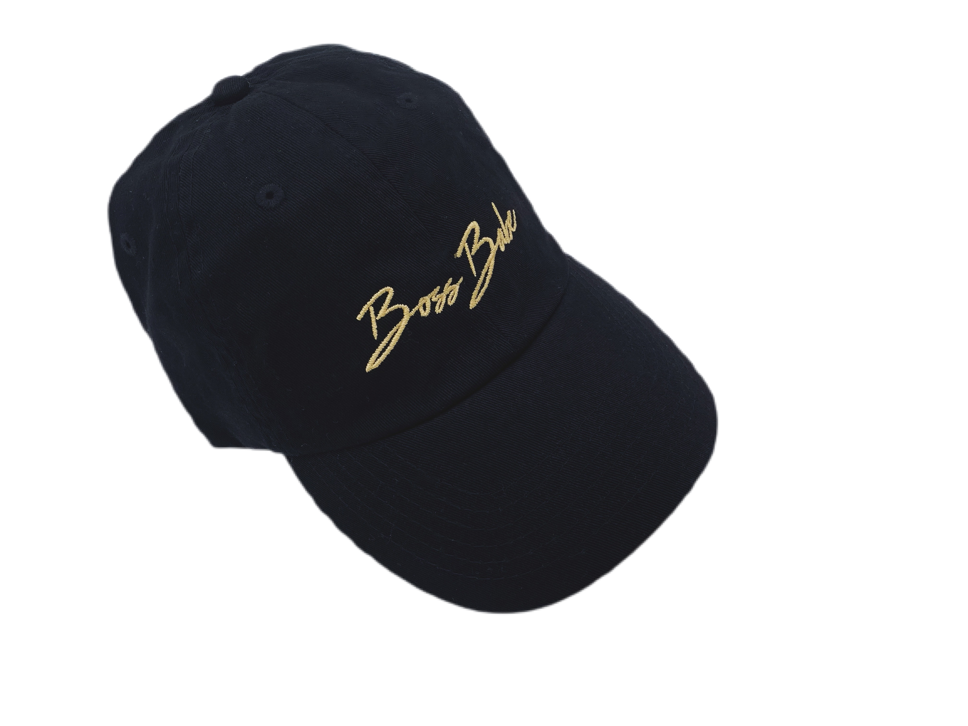 Soft Adjustable Hat. Black with Gold design. Strap adjustment.
